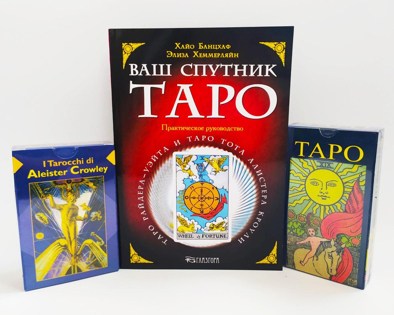 Набір Книга і дві колоди карт ( Таро Уейта "Сонечко", Таро Кроулі, Ваш Супутник Таро ) ( ukraine)
